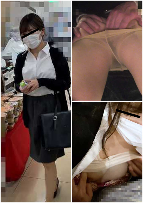 痴○するだけでなく「紐パン」という副産物をその場で盗むという卑劣というか、ただの犯罪映像です。今回、我々はプレイヤー側ではなく観察・撮影側です。場面は早朝地下鉄。まだコンビニもこれからの通勤ラッシュにひかえて荷出しの真っ只中。タゲは一見厳しく気の強そうな上司系OL。疲れた感じがしなくもないですが、早朝のOLはだいたいこんなもんです。よくみるとパッチリ二重で10代の頃なんかはブイブイ言わせていた雰囲気がでています。やはり疲れているのか、電車待ちの間も椅子に座って待機。(ほどよく)混雑した車両が到着します。ずっと気になってたんですが、鞄を抱きかかえるように前に持ってます。これは深層心理で「不安」や「恐怖」「警戒心」を感じている時にする仕草です。さては常習的に痴○されてるな…とこの時脳裏によぎります。結論からいうと大当たりでした。乗車後速攻はじまります。前方の縞シャツ男がぴったりとタゲに張り付きシャツの隙間から結構豪快に手を差し込み!このとき、表情が「ピクッ」と変わるものの抵抗する様子は一切なし。何か弱みでも握られているのでしょうか。触られていることは当然わかっているのに抵抗することもなく、だからといってOKでもないようなオーラです。生ブラに辿りづけずモタモタしていると豪快にボタン開けからのキャミぶっこみ生乳っ!!からの乳首コリ!!!と同時にタイツの触感を味わうかのようなじっくり尻鷲掴み揉み!!!!いきなり情報量が多くなるので注意して閲覧ください。タイトスカートへ真下から鞄亀を差し込めたので、大迫力のアングル!手の動きもよーくわかります。乳首が出たり入ったり途中でブラとキャミに乳首がひっかかって「プリンッッッ…」舐めると舌の上でコロコロ良い食感がしそうなレーズン系の乳首。舌はタイツを履いてるし、破るかどうかが展開の分れ目かなぁとスマホに映しだされる映像をみていると…何かに気づく痴○…【9:39】…「紐パンです」「真っ赤な紐パン…」気づくのすごくないですか。なかなか腰ひもに手をやったりもしないですし、事前に知っていたかのような動きです。「右」「左」とテンポよく順番にほどかれて【10:40】「回収完了」(恐らく泥棒の心境はこんな感じかと)ここから『ノーパン×半ずらしタイツ』あいにく中身がタイツで見えないので「処理はほどこしておりません」個人的には大有りなアングル。良いお尻してます。。小ぶりなのに「パンッ…!」と張りのある尻。下に夢中になってると、上が全力全開状態に!!!小ぶりでキュッとしたおっぱいは乳首とその根元を中心に「コリッコリプレイ」【13:10】…タゲの股間のオマンコア部分に到達した瞬間「ヘァハァ…ヒヘァハァ…」漏れるような喘ぎ声。ここからってときに降車。いつもの違う駅で降りていったので我慢ならなかったのでしょうか。紐パン盗まれて、ノーパンタイツのタゲが逃げていくのを見届けてリリース。※カーディガンで隠してますがシャツのボタンが外れて乱れてて清掃員のおっちゃんに横目でガン見されてます笑