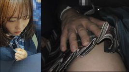 あの○○生達は実際は触ってなかったとされてますが実際はどうなんでしょうか。どちらにせよ、この電車に乗り込んできた親父達(少なくとも)8人のほうが卑劣極まりないことは間違いないはずです。タゲはまさにクラスのマドンナといったどこからみても可愛い娘。ツヤのあるしっとりとした薄っすら茶色がかった黒髪に、シュっとしたアゴのラインの小顔。目元と口元に少し大きめのホクロがあり「かわいさ」と「セクシー」さを併せ持ったまさにハイブリットマドンナです。乗車時にはそれらしき者達が私のほかに3名。乗り込み後に増えに増えて、最終的には観察者を含めると8名程になっていたかとおもいます。囲っているというか互いに圧迫しあってかなり苦しく、映像ではわかりづらいですがタゲの足が床についていない…です。後方から両脇を持たれて揉まれ両サイドから膝の裏あたりから、足を差し込まれて「お股」を閉じないようにブロッキングそんな態勢にもなりゃ宙にも浮きます…まさに垂直胴上げ状態。ときおり苦しそうに足をバタバタさせながら、地面に降りようとしますが不可。そのあいだにサンプル画像にある通り。ブラがひんまがるような胸揉み。パンツが伸びてア○ルにまで食い込んでしまうような強烈な手マン。息苦しいのと、不同意な気持ちそんな中、徐々に気持ちよくなっていき本能的に受け入れていってしまうクラスのマドンナあまりに皆、押し合うので左右多彩なアングルと表情をお楽しみいただけます。床はどうしても映せず、脳内補完してもらうしかないのですが7:20あたりから浮いていたはずです。時折、こちらの仕込み亀に気づいてか目線をやってくれたりナチュラルなサービスをしてくれたりと随所随所に見所がある良作だとおもいます。派手ではありませんが、じっくりと表情と動きを読み解いていただければこのジャンル好きな方は脳汁噴射ほぼ間違いないのではないでしょうか。